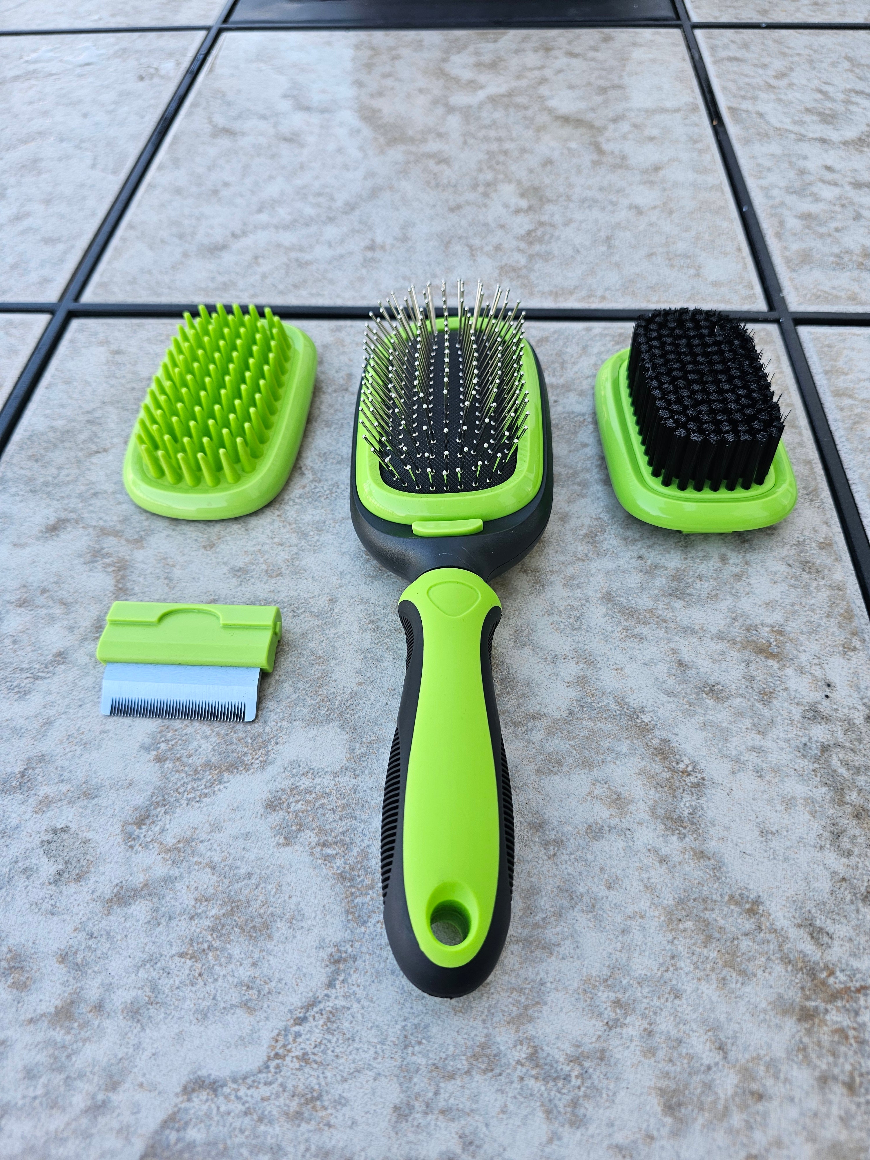 Our 5-in-1 PetKare Groomer is built with durability in mind. It features tough, high-quality plastic, premium reinforced rubber for a secure, non-slip grip, and rust-resistant stainless steel—so you get a grooming tool that’s not only long-lasting but also comfortable and easy to use every day.
